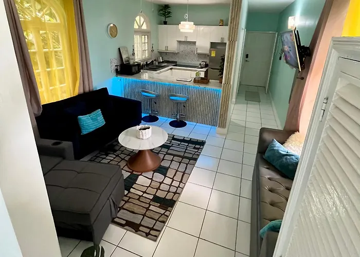 Ao se alojar no View6 At Skycastle Apartamento Ocho Rios, os hóspedes podem relaxar no terraço a 10 minutos de carro das Cachoeiras do Rio Dunn. O Wi-Fi é fornecido para atividades empresariais e de lazer.